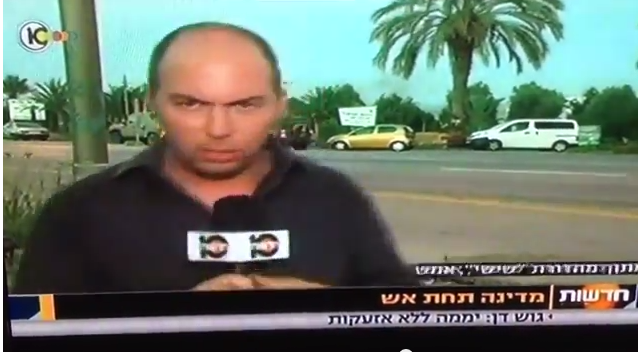 أظهر مقطع فيديو ، بثته شبكة “قدس” الإخبارية ، مراسل القناة العاشرة الإسرائيلية، وهو يهرب على الهواء مباشرة بعد سقوط أحد القذائف الصاروخية خلفه .