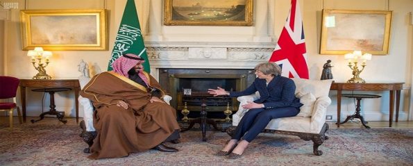 ورحّبت ماي، بزيارة ولي العهد، حيث عقدا لقاءً ثنائياً، فيما نقل الأمير محمد بن سلمان، تحيات خادم الحرمين الشريفين الملك سلمان بن عبدالعزيز، إلى رئيسة وزراء بريطانيا، كما رغبت من ولي العهد، نقل تحياتها إلى الملك سلمان بن عبدالعزيز .