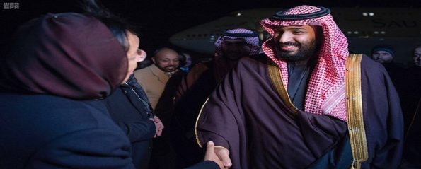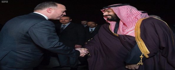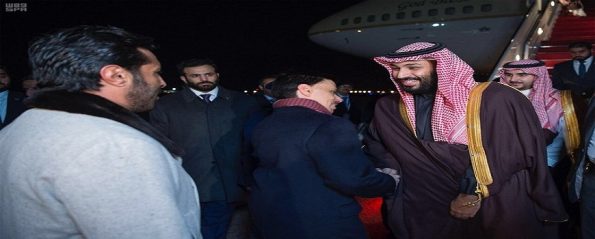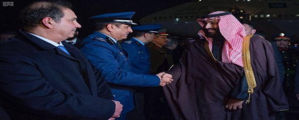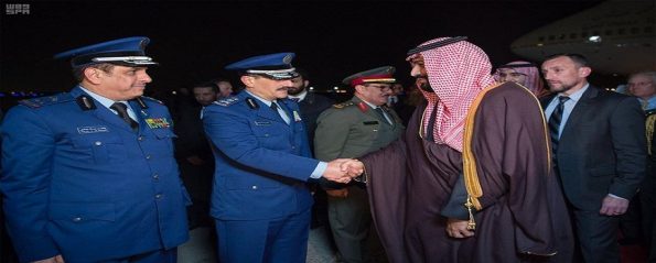 وكان في استقبال ولي العهد، الأمير فيصل بن فرحان؛ المستشار بوزارة الخارجية، والأمير محمد بن فيصل بن سعود؛ والأمير مصعب بن محمد بن فهد؛ والأمير عبدالله بن ناصر بن فهد؛ والأمير تركي بن ناصر بن سعود؛ والأمير سلمان بن عبدالله بن سلمان؛ والأمير هذلول بن سلطان بن سعود؛ والأمير خالد بن مشعل بن ماجد؛ والأميرة لولوة بنت بدر بن محمد؛ والأمير فهد بن بدر بن محمد.