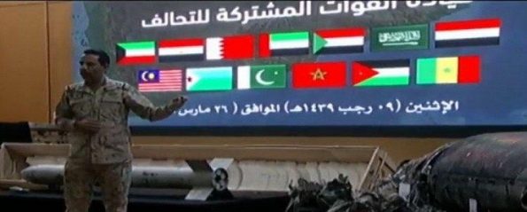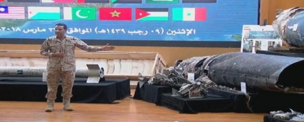 عرض تحالف دعم الشرعية باليمن، اليوم الاثنين (26 مارس 2018م)، بقايا الصواريخ التي استهدفت السعودية أمس الأحد، مؤكداً أن حطام الصواريخ يثبت أنها إيرانية المصدر.
