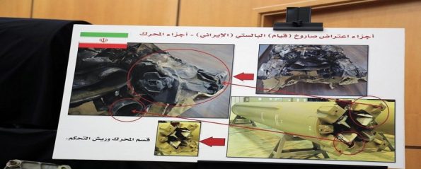 واستعرض خلال المؤتمر بقايا الصاروخ الذي ثبت أنه تم تهريبه إلى اليمن في أجزاء منفصلة، بدليل أن أجزاءه لحمت مع بعضها فيما بعد، وما دون عليه من عبارات باللغة الفارسية، مؤكداً ضبط صواريخ من نوع (صياد) إيرانية الصنع قبل وصولها للحوثيين، كما أكّد أن تهريب طهران لهذه الصواريخ انتهاك صريح للقانون الدولي باستهداف مناطق مدنية.