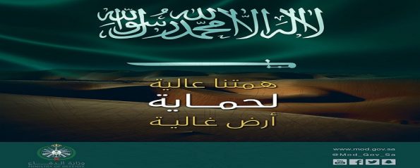 قال الحساب الرسمي لوزارة الدفاع السعودية، خلال تغريدة مصورة، اليوم الأربعاء (11 أبريل 2018م): “همتنا عالية لحماية أرض غالية”.