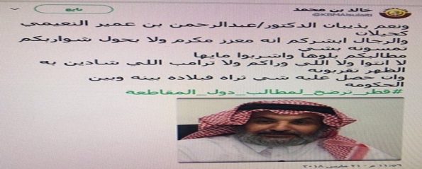 في واقعة تُعد من غرائب قطر التي لا تُحصر، فوجئ متابعون بتهنئة وردت في أكبر الصحف القطرية بمناسبة زفاف نجل الإرهابي المطلوب على القوائم القطرية نفسها، والإشارة هنا إلى القائمة التي أعلنت عنها الداخلية القطرية مؤخراً والتي ضمت اسم 19 فرداً، من بينهم 11 مواطناً قطرياً، وعدد من الكيانات القطرية، وكان من أبرزهم عبد الرحمن النعيمي نفسه التي احتفلت الصحف القطرية بزفاف نجله.