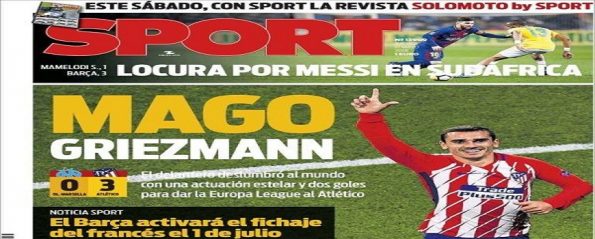 وأشادت صحيفة (سبورت)، بأنطوان جريزمان على غلافها وعنونت “الساحر جريزمان”.
