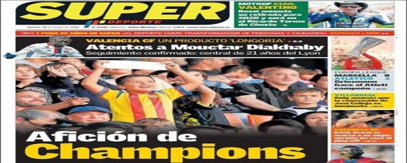 وأما صحيفة (سوبر ديبورتي)، اهتمت برغبة فالنسيا في التوقيع مع مختار دياكابي، مدافع ليون في الصيف المقبل.