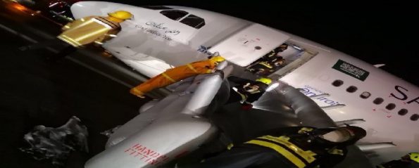 هبوط طائرة (السعودية) بدون عجلات ونجاة 151 راكباً