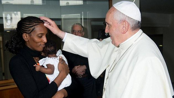 قابلت “مريم”، المرأة السودانية المتهمة بـ”الردة” والمعفو عنها، البابا في روما عند وصولها إلى العاصمة الإيطالية، بعدما أمضت نحو شهر في السفارة الأميركية بالخرطوم.