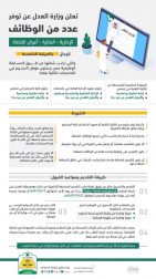 ونوهت الوزارة إلى أن التقديم يبدأ من تاريخ 17/10/1439 ولمدة خمسة أيام في دوام العمل بالوزارة لينتهي 21/10/1439هـ.