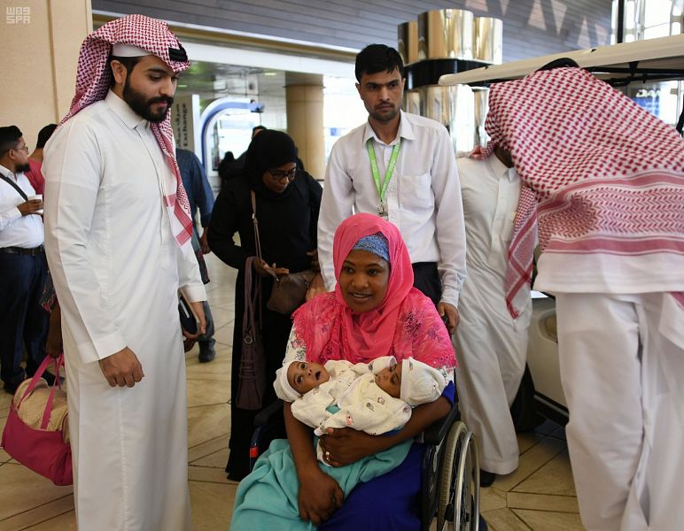 وصل إلى مطار الملك خالد الدولي، اليوم، التوأم السيامي التنزاني ميلنيس وأنيسيا من جمهورية تنزانيا المتحدة، برفقة والدتهما والفريق الطبي المرافق، وأدخلا مدينة الملك عبدالعزيز الطبية بالحرس الوطني في الرياض، بتنسيق ومتابعة من مركز الملك سلمان للإغاثة والأعمال الإنسانية لعلاجهما ودراسة إمكانية فصلهما.