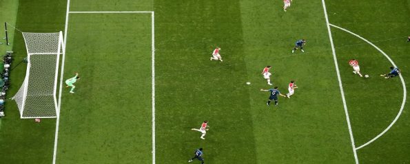 وسجل أهداف المنتخب الفرنسي، ماريو ماندزوكيتش”هدف ذاتي” وأنطوان جريزمان “ركلة جزاء” وبول بوجبا وكيليان مبابي في الدقائق “18 و38و59 و65” بينما أهداف المنتخب الكرواتي من توقيع إيفان بيريسيتش وماريو ماندزوكيتش في الدقائق “28 و69”. من زمن اللقاء.