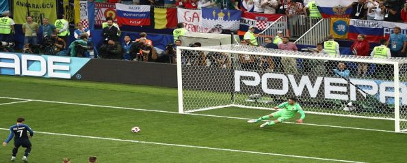 وسجل أنطوان جريزمان، الهدف الثاني لفرنسا من ركلة جزاء احتسبت بعد الاستعانة بتقنية الفيديو بعد لمسة يد إيفان بيريسيتش الكرة داخل منطقة الجزاء في الدقيقة “38” من زمن اللقاء.