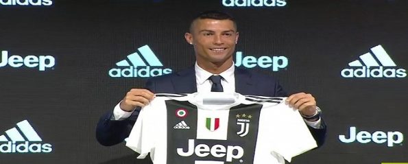 ظهر البرتغالي كريستيانو رونالدو، خلال المؤتمر الصحفي الأول له كلاعب لنادي يوفنتوس الإيطالي، حيث تم تقديمه، اليوم الاثنين (16 يوليو 2018م)، أمام أكثر من 300 شخص من وسائل الإعلام من مختلف أنحاء أوروبا.