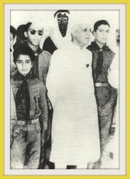وقال الحساب في تعليقه على الصورة التي نشرها نقلا عن مجلة “الناصرية” :”صورة نادرة لرئيس وزراء الهند نهرو وهو يقف بين الطالبين الأمير سطام بن عبدالعزيز رحمه الله (يمين الصورة) والأمير مقرن بن عبدالعزيز حفظه الله أثناء زيارته معهد الأنجال عام 1956م”.