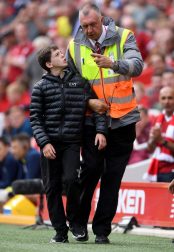غافل طفل رجال الأمن واقتحم ملعب أنفيلد، الذي شهد المباراة التي جمعت بين ليفربول وضيفه ويستهام يونايتد، اليوم الأحد، ضمن منافسات الجولة الأولى من الدوري الإنجليزي.