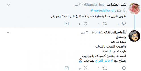 ووجه متابع ثالث انتقادا للفراج، قائلًا:”تغريدتك لاتخلو من المجاملة ، بصراحة مستوى البرنامج متدني جدا ومخجل بسبب تواضع الإمكانيات والتجهيزات ، افتقدنا كثيرا البرنامج المتميز جدا ” اكشن يادوري ” لايليق بقامة كبيرة متميزة مثلك الاستمرار في هذا البرنامج ، مع احترامي”.