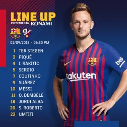 يدخل برشلونة مباراة اليوم الأحد أمام ضيفه ويسكا في الجولة 3 من الدوري الإسباني بنفس التشكيل الذي واجه به ريال بلد الوليد في الجولة الماضية حين فاز بهدف دون رد.