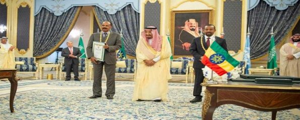 وقع رئيس دولة إريتريا أسياس أفورقي ، ودولة رئيس وزراء أثيوبيا آبي أحمد علي، اليوم الأحد (16 سبتمبر 2018م)، في جدة اتفاقية جدة للسلام بين جمهورية أثيوبيا الديمقراطية الاتحادية ودولة إريتريا، برعاية كريمة من خادم الحرمين الشريفين الملك سلمان بن عبدالعزيز، وحضور ولي العهد نائب رئيس مجلس الوزراء وزير الدفاع الأمير محمد بن سلمان بن عبدالعزيز.