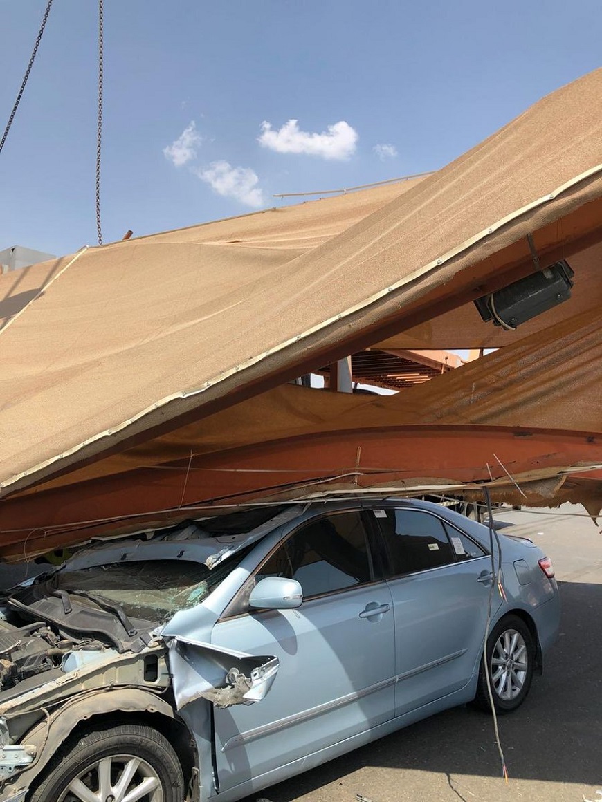 تدمير سيارات إثر سقوط مظلة بمكة (صور)