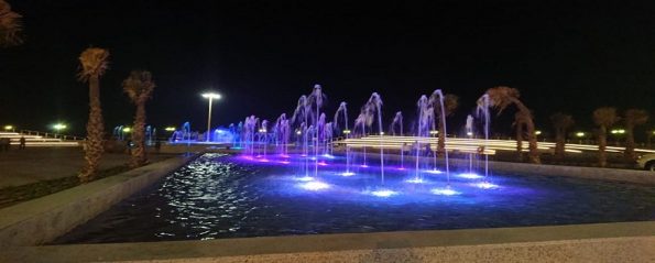 وعمدت أمانة المنطقة الشرقية، إلى إضاءة المنطقة بالكامل بأعمدة إنارة تجميلية تغطي كامل المنطقة، إلى جانب تزيين المنطقة بنافورة خرسانية (حوض مستطيل وكرة دائرية)، في الوقت الذي يحيط بالنافورة من الجانبين مجسم جلسات تم تزيينه بسور من الإستانليس ستيل للحماية، كما يحتوي على مندرج مغطى بألواح القرانيت المتداخل مع العشب الصناعي.