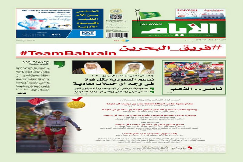 صحيفة بحرينية تصدر باللون الأخضر تضامنا مع السعودية