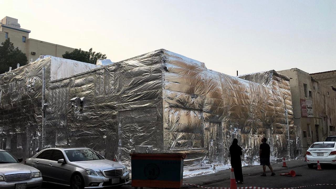 على امتداد جدران أحد البيوت الشعبية المتهالكة في مدينة الخبر، انصهرت جدلية الاندثار والبقاء.. من خلال أوراق القصدير التي أبرزت تفاصيل واجهات البيت، بدلاً من استخدام الطلاء التقليدي.