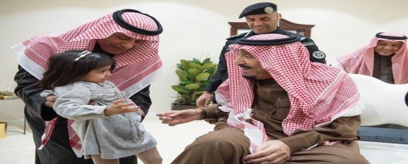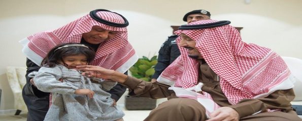 وفي لمسة حانية من خادم الحرمين الشريفين ـ حفظه الله ـ استقبل الطفلة مبتسمًا، واحتضنها.