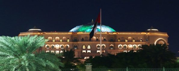 أبوظبي تتوشح العلم الأخضر احتفالاً بزيارة الأمير الشاب