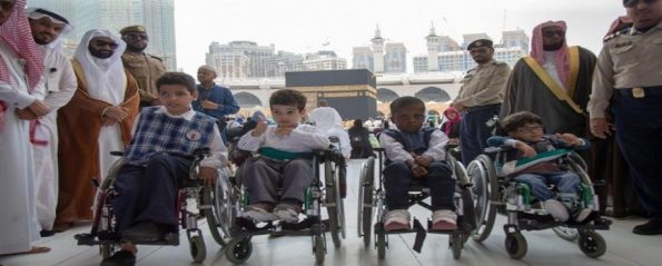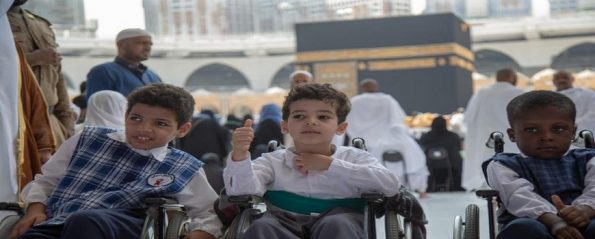شؤون الحرمين تسهّل لأطفال من ذوي الإعاقة الطواف وتقبيل الحجر الأسود