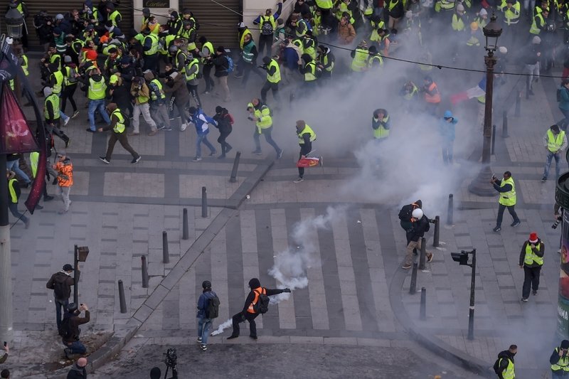 وأفادت مراسلة شبكة سكاي نيوز، بأن الشرطة أطلقت قنابل الغاز، في محاولة لتفريق المتظاهرين الذين تجمَّعوا في محيط قوس النصر الشهير بباريس، مشيرة إلى أن المتظاهرين كانوا يريدون الوصول إلى القصر الرئاسي، إلا أن قوات الأمن منعتهم.