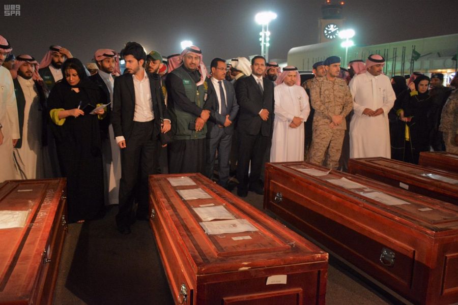 وصلت إلى الرياض مساء السبت (2 فبراير 2019)، طائرة تحمل على متنها ضحايا العمل الإنساني للمشروع السعودي لنزع الألغام من أراضي الجمهورية اليمنية الشقيقة “مسام” أحد برامج مركز الملك سلمان للإغاثة والأعمال الإنسانيه المقدمه للشعب اليمني الشقيق وعددهم خمسة من عدة جنسيات.