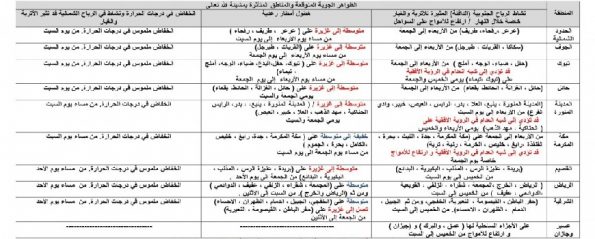 وذكرت الهيئة العامة للأرصاد وحماية البيئة في تقريرها المفصل التالي: