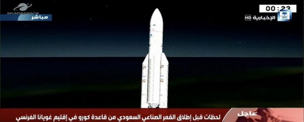 أعلنت المملكة العربية السعودية ممثلة في مدينة الملك عبد العزيز للعلوم والتقنية، عن إطلاق القمر السعودي الأول للاتصالات (SGS-1)، بنجاح من مركز غويانا الفرنسي للفضاء على متن الصاروخ “أريان 5″، الذي وقع صاحب السمو الملكي الأمير محمد بن سلمان بن عبد العزيز ولي العهد نائب رئيس مجلس الوزراء وزير الدفاع – حفظه الله -، على القطعة الأخيرة له بعبارة “فوق هام السحب”.