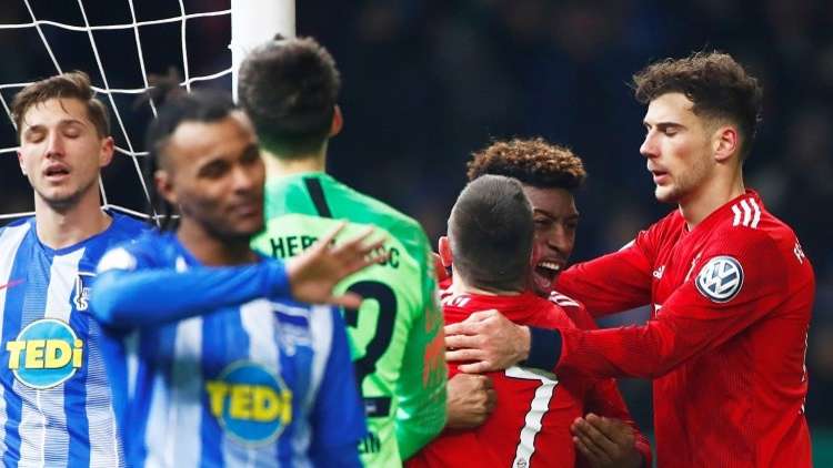 أكمل بايرن ميونيخ عقد الدور ربع النهائي لمسابقة كأس ألمانيا لكرة القدم، على حساب مضيفه هيرتا برلين، إثر فوزه عليه (3-2) بعد تمديد المباراة التي جرت بينهما الأربعاء (6 فبراير 2019).