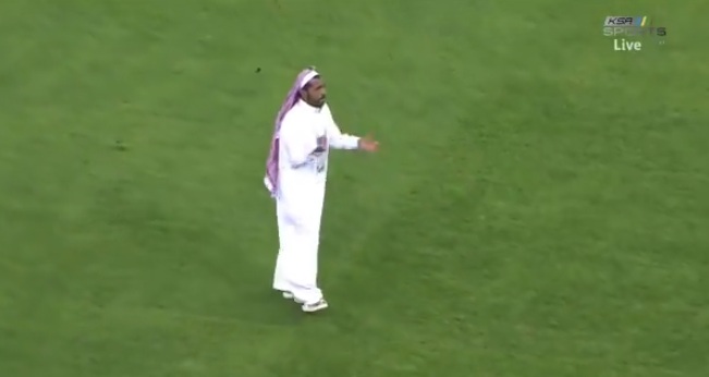 تناقل مغردون سعوديون مقطع فيديو، يظهر لحظة نزول رئيس نادي الهلال، الأمير محمد بن فيصل، إلى أرضية الملعب بعد انتهاء مباراة فريقه مع الاتحاد للاحتفال بالفوز.