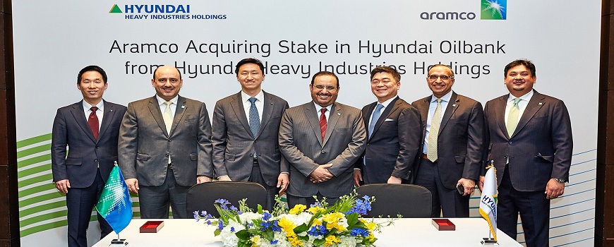 أعلنت شركة الزيت العربية السعودية (أرامكو السعودية)، وشركة هيونداي للصناعات الثقيلة القابضة، الاثنين (15 أبريل 2019م)، عن شراء شركة أرامكو فيما وراء البحار بي. في. حصة تبلغ 17% من هيونداي أويل بنك الكورية الجنوبية، وهي شركة تابعة لشركة هيونداي للصناعات الثقيلة القابضة. وتقدّر قيمة الاستثمار بنحو 1.25 مليار دولار. ويعزز استثمار شركة “أرامكو فيما وراء البحار بي. في.” في هيونداي أويل بنك الكورية الجنوبية جهود أرامكو السعودية في تسويق نفطها الخام من خلال إضافة منفذ موثوق لتسويق النفط الخام العربي إلى كوريا الجنوبية.