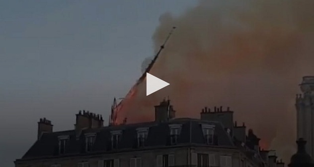لحظة انهيار برج وسقف كاتدرائية نوتردام الأثرية بالكامل (فيديو)