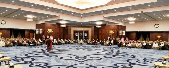 وقال خلال استقباله في مجلسه الأسبوعي (الاثنينية)، بديوان الإمارة الذي استضاف فيه منسوبي فرع وزارة الشئون الإسلامية والدعوة والإرشاد بمناسبة قرب دخول شهر رمضان المبارك: يجب أن لا نستغرب ما حدث فالشر موجود في كل مكان وزمان ولكن كما للشر شياطين يعملون فأيضاً للخير جنود نذروا أنفسهم لخدمة الدين والوطن والمحافظة على أمن المواطن والمقيم وأمن البلاد والعباد فلهم منا التقدير والإشادة ونقول لهم دائماً “أحسنتم وهذا ما عودتمونا عليه وهذا ما نعهده منكم وليس بالمستغرب عليكم ولا على آبائكم ولا أحد من أبنائكم”.