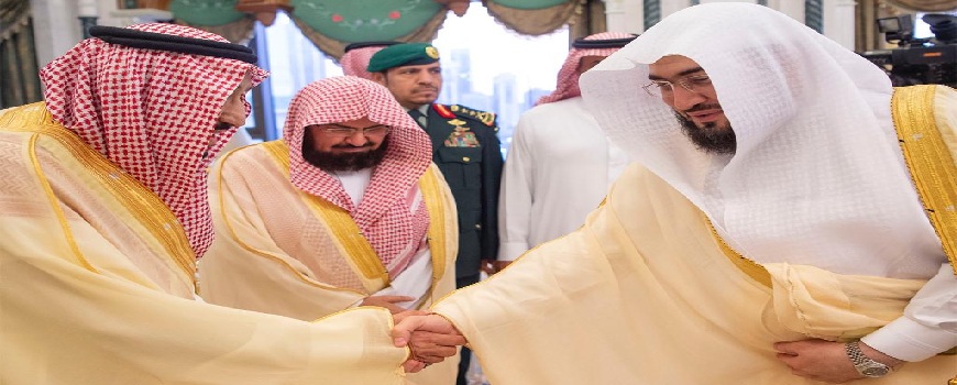 واستقبل الملك سلمان بن عبدالعزيز، العلماء، والرئيس العام لشؤون المسجد الحرام والمسجد النبوي الشيخ الدكتور عبدالرحمن بن عبدالعزيز السديس، وأئمة ومؤذني المسجد الحرام، الذين قدموا للسلام عليه.