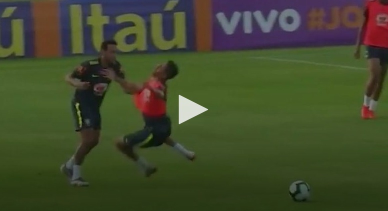 شاهد.. نيمار يهاجم بعدوانية زميله لاعب منتخب البرازيل