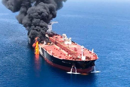 وبث التلفزيون الرسمي الإيراني اليوم صورا وفيديو يظهران بحسبه النيران تتصاعد من إحدى ناقلتي النفط اللتين أفيد عن تعرضهما لهجمات الخميس في خليج عمان.