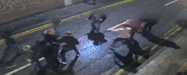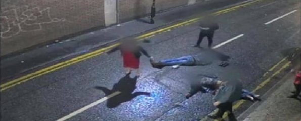 ويظهر الفيديو مجموعة من سبعة شبان يضربون ويركلون 5 نساء ورجال من أفراد عائلة واحدة، كانوا يرددون الأغاني احتفالا بالزفاف المرتقب في أحد شوارع مانشستر بعد خروجهم من حانة.