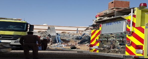 وذكر المتحدث الرسمي للمديرية بمنطقة المدينة المنورة العقيد خالد الجهني، أن إدارته تلقت بلاغا عن حادث انهيار مبنى تحت الإنشاء مكون من دورين وملحق مقام من الكمرات الحديدية والحوائط الخرسانية الحاملة ومسقوف من الزنك والخرسانة المسلحة واحتجاز ثلاثة عمال أسفل المبنى المنهار تحت الأنقاض هرعت إثره الفرق ومنها فرقة التدخل في حوادث الانهيارات وفرقة مساندة من إدارة بدر للموقع تساندها فرق من بلدية ينبع والأمن الصناعي بالهيئة الملكية بينبع والصحة والهلال الأحمر والمرور والدوريات الأمنية وبعض الشركات الصناعية و شركة ياسرف.