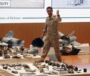 وأعلن تركي المالكي أن طائرات مسيرات إيرانية الصنع (درونز) من طراز “دلتا-ونج” شاركت في الهجوم على أرامكو. وعرض مقطعاً يظهر أن الطائرات المسيرة التي هاجمت معملي أرامكو كانت تحلق من الشمال للجنوب.