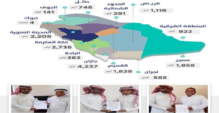 وأوضح “سكني” أن التسليم شمل 2738 أرضاً للمواطنين المستحقين في منطقة مكة المكرمة، إضافةً إلى 2208 أراضي في منطقة المدينة المنورة، و 1116 مواطناً تم تسليمه في منطقة الرياض، و 922 مواطناً استلم أرضه المجانية في المنطقة الشرقية، وفي منطقة عسير تم تسليم 1858 أرضاً، بينما تسلم 4237 مواطناً أراضٍ مجانية في منطقة جازان، كذلك تسلم 1828 مواطناً في منطقة القصيم أراض مجانية، و 748 مواطنًا في حائل، و 4 مواطنين في منطقة تبوك، كما سلم البرنامج 585 أرضاً سكنية في منطقة نجران، أما منطقة الباحة فبلغ مجموع الأراضي السكنية المجانية التي تم تسليمها 383 أرضاً، و 291 أرضًا في منطقة الحدود الشمالية، و 141 أرضًا في منطقة الجوف.
