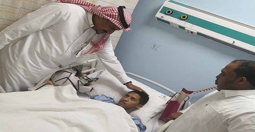 وقال الطالب حسين: “حضرتُ إلى المدرسة مبكرًا قبل وصول الطلاب، وصعدت إلى فصلي بالدور الثالث، وما هي إلا لحظات حتى بدأ توافد الطلاب، وأخذ قائد المدرسة في النداء بالتوجه إلى مقر إقامة الطابور الصباحي، وعندها صعدت على الحاجز الحديدي للممر بالدور ذاته لمشاهدة من هم بالساحة الداخلية اختل توازني ولم أشعر بنفسي إلا وأنا ممدد بساحة الدور الأرضي، وبي آلام مبرحة في مختلف جسمي ونُقلتُ على أثرها لمستشفى محايل، وأُخضعت لفحوصات طبية عدة في الطوارئ، قبل أن يتم نقلي إلى غرفة التنويم التي أوجَد بها الآن”.