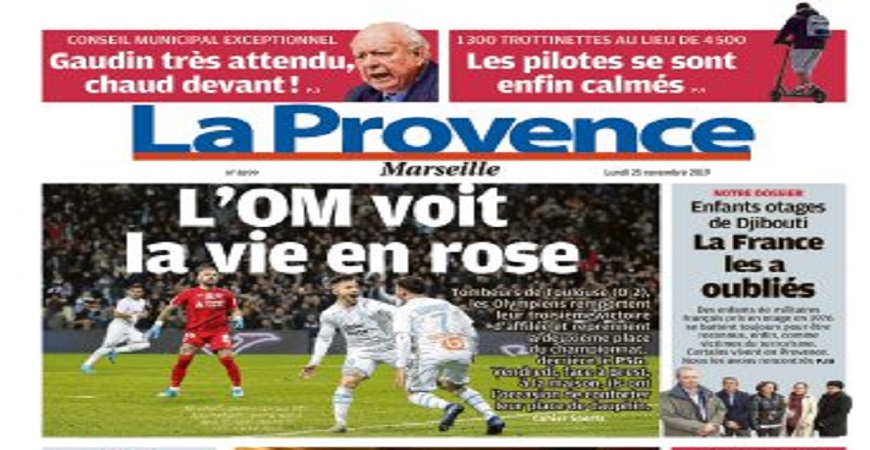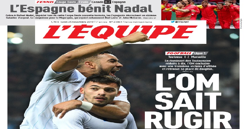 تنوعت الصحف الفرنسية، الصادرة الإثنين (25 نوفبر 2019م)، في إشادتها بصحوة أولمبيك مارسيليا، وفوزه خارج ملعبه بهدفين دون رد أمام تولوز في الجولة 14 من بطولة الدوري.