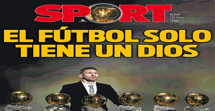 سلطت الصحف الإسبانية الصادرة، الثلاثاء (الثالث من ديسمبر 2019م)، الضوء على فوز الأرجنتيني ليونيل ميسي نجم وقائد برشلونة بالكرة الذهبية كأفضل لاعب في العالم، من مجلة «فرانس فوتبول» في العاصمة الفرنسية باريس.