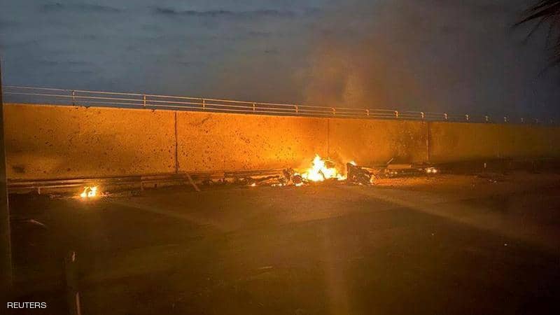 وبثت وكالة “رويترز” في وقت لاحق صورا تظهر صورا مركبات مشتعلة بالنيران قرب مطار بغداد الدولي. وأعلنت الولايات المتحدة مسؤوليتها عن اغتيال سليماني الذي كان يهم بالخروج من مطار بغداد، عبر قصف صاروخي استهدف موكبه.وقتل في القصف الذي استهدف موكب سليماني، نائب قائد ميليشيات الحشد الشعبي في العراق أبو مهدي المهندس.