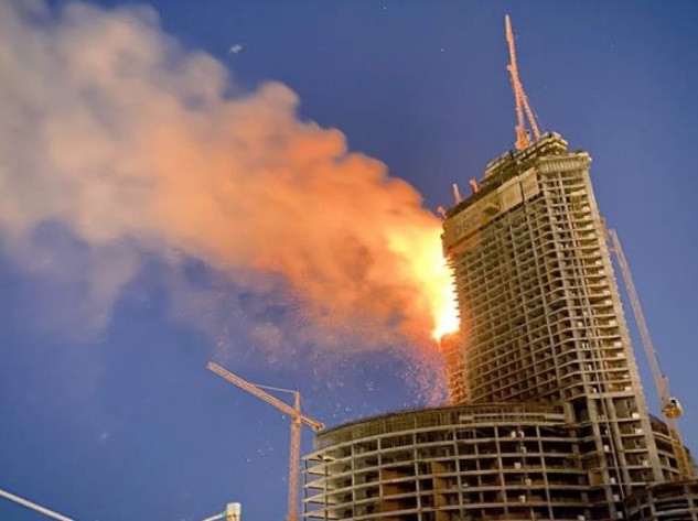 تمكنت فرق الدفاع المدني من السيطرة على حريق نشب ، فجر الجمعة (10 يناير 2020) ، في أعلى برج تحت الإنشاء يطل على كورنيش جدة.