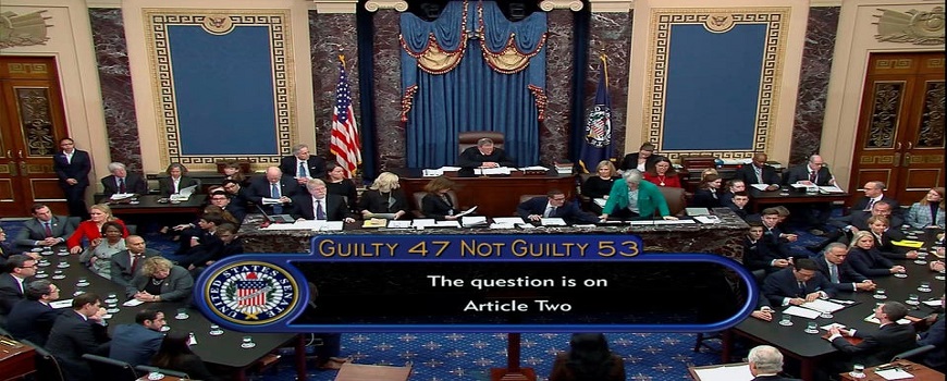 وفي المجلس المؤلّف من 100عضو، صوّت 52 عضواً جمهورياً من أصل 53 على تبرئة الرئيس الأميركي من تهمة استغلال السلطة، فيما صوّت 53 عضواً جمهورياً على تبرئته من تهمة عرقلة عمل الكونغرس، وهما التهمتان اللتان وجّههما إليه مجلس النواب في 18 كانون الأول/ديسمبر الماضي.